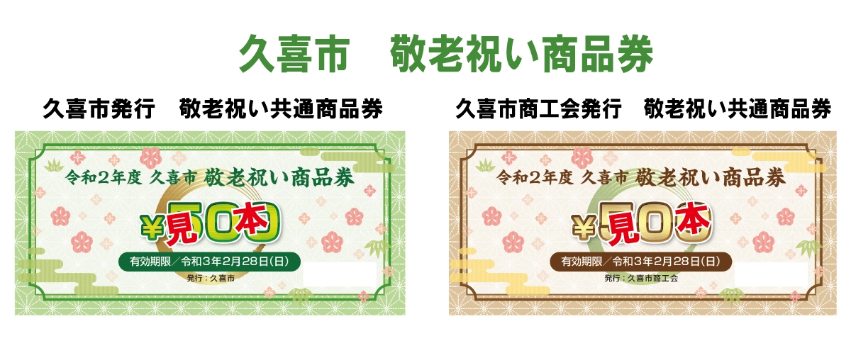 『久喜市商工会 共通商品券』と『久喜市 敬老祝い商品券』は
